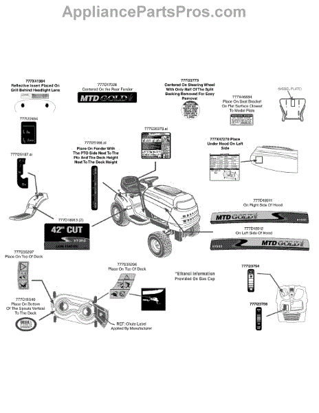 Parts for Mtd Gold 13AL795S004 / 2014: Label Map Parts