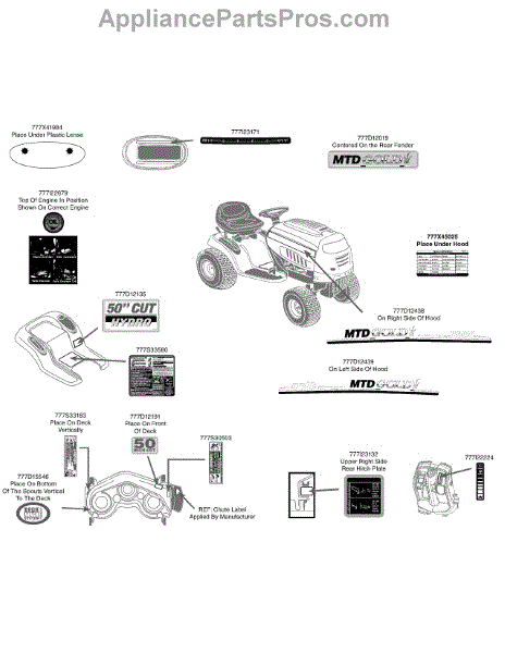 Parts for Mtd Gold 13AP925P004 / 2011: Label Map Parts