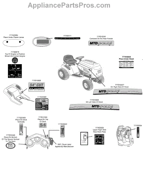Parts for Mtd Gold 14AK945K004 / 2011: Label Map Parts