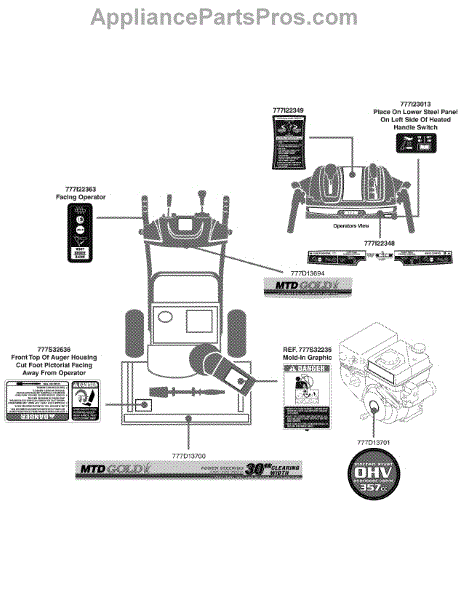 Parts for Mtd Gold 31AH55LH704 / 2009: Label Map Parts