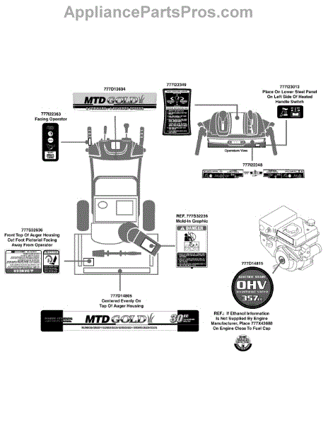 Parts for Mtd Gold 31AH55LH704 / 2010: Label Map Parts