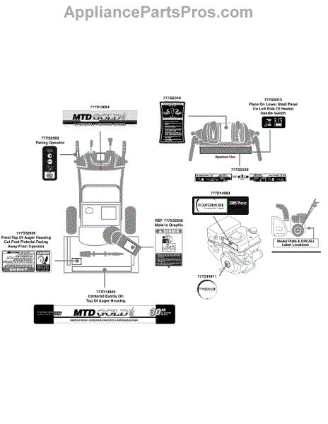 Parts for Mtd Gold 31AH55LH704 / 2011: Label Map Parts