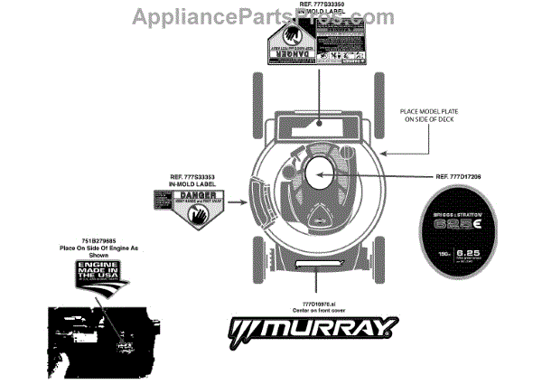 Parts for Murray 11A-B24Z758 / 2013: Label Map Parts