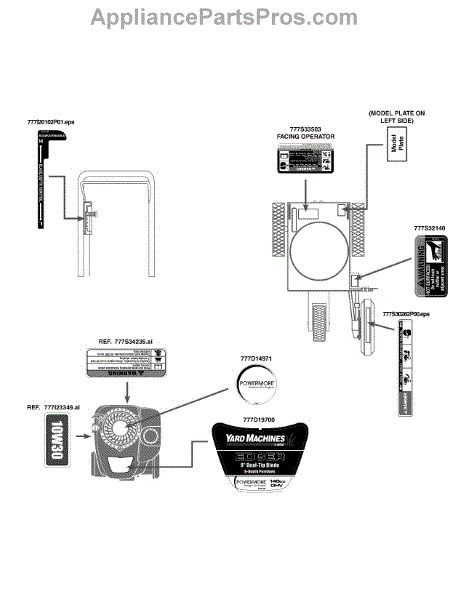 Parts for Yard Machines 25B-52J1700 / 2014: Label Map Parts