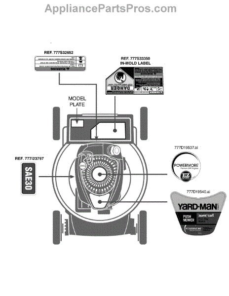 Parts for Yard-Man 11A-A12N701 / 2014: Label Map Parts