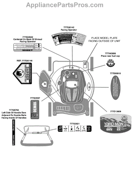 Parts for Yard-Man 12A-26M7001 / 2009: Label Map Parts