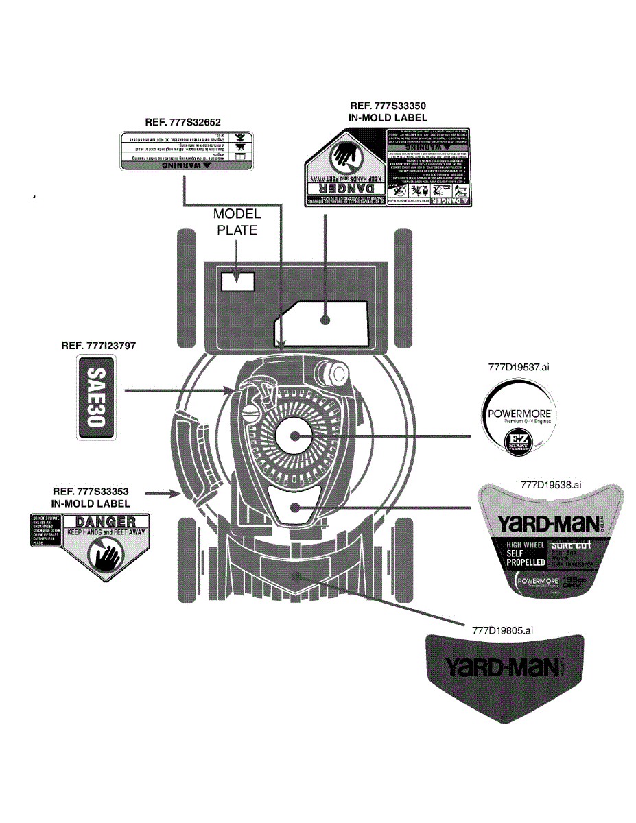 Parts for Yard-Man 12AKD32N701 / 2014: Label Map Parts