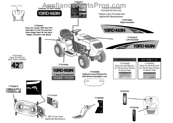 Parts for Yard-Man 13AO772S055 / 2013: Label Map Parts