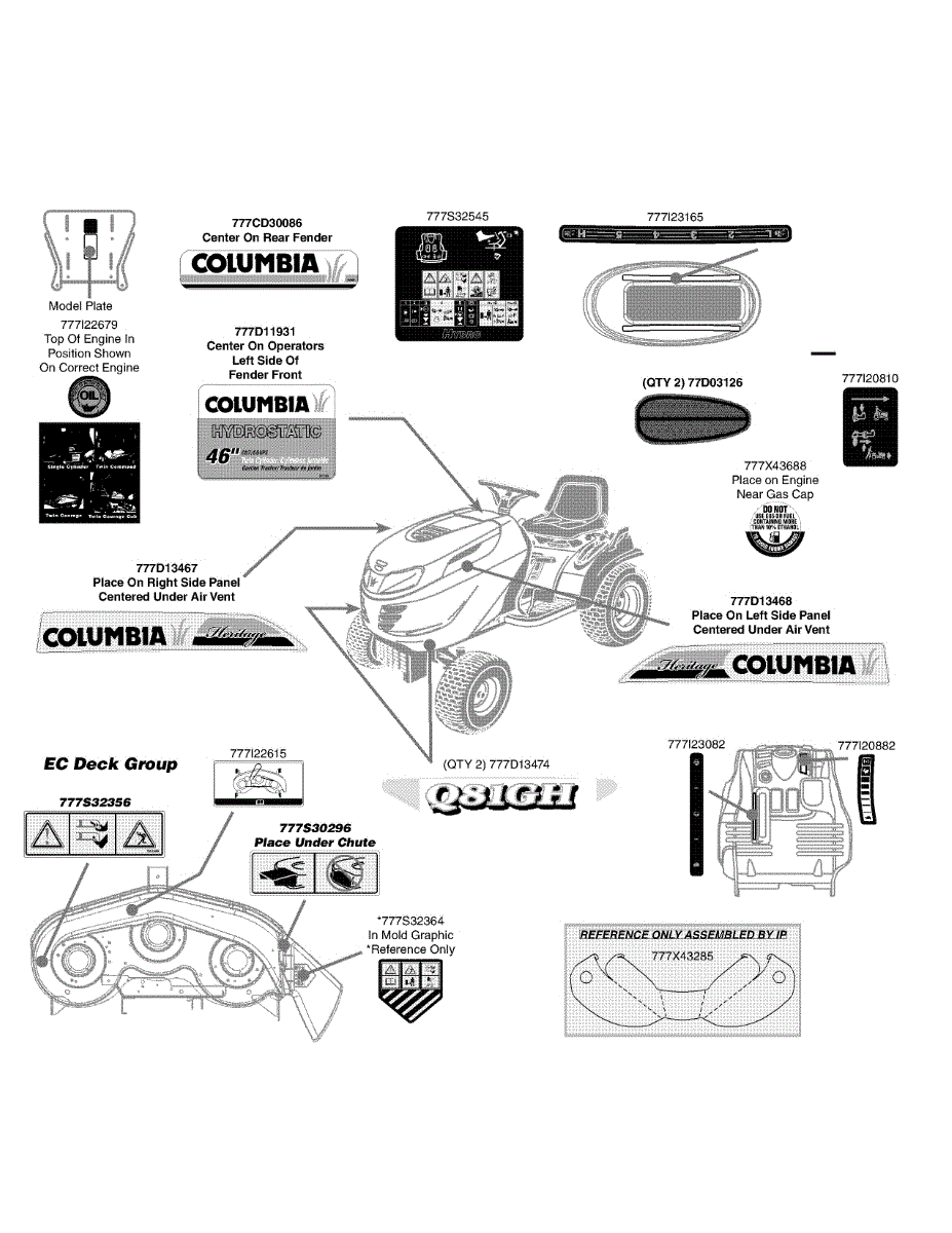 Parts for Columbia 14AQ81GH897 / 2009: Label Map Q81gh Parts