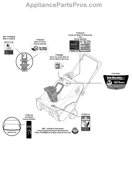 Parts for Yard Machines 31A-2M1A752 / 2009: Label Map Yard Machines Parts