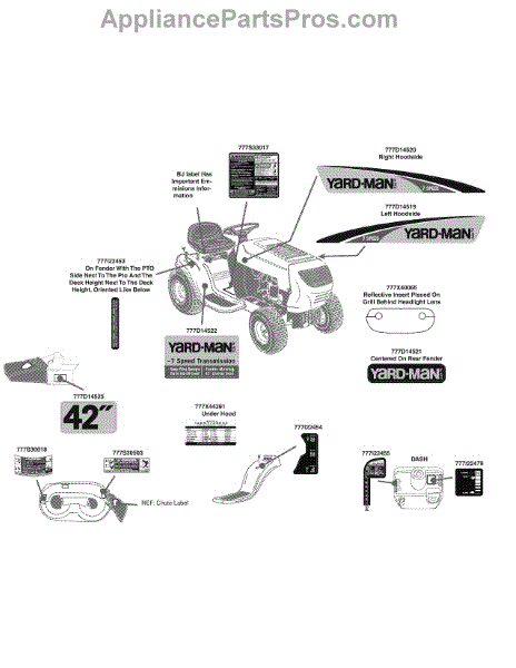 Parts for Yard-Man 13AM772S055 / 2010: Label Map Yard-Man Parts