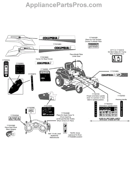 Parts for Columbia 17AF2ACK897 / 2012: Label Map Zt54 Parts