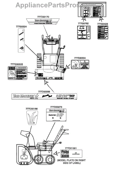 Parts for Yard Machines 31AE740F000 / 2000: Labels Parts