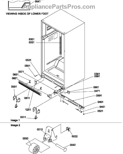 Parts for Amana TM17TBL-P1305901WL: Ladders, Lower Cabinet And Rollers Parts