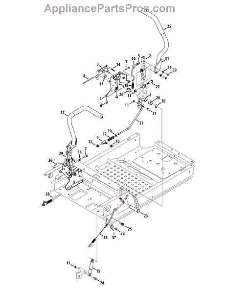 This part is a lap bar handle for the right-hand side of zero-turn riding lawnmowers. The operator uses this part is to control the transmission. The operator can control the speed and the steering with the lap bars. There are two lap bars per lawnmower, each working independently of the other. The left-hand lap bar handle is not included with this one.The right-hand lap bar handle may need to be replaced if it has been broken or dented due to forceful impact. The black metal material that this part is manufactured out of could become corroded or otherwise degraded, in which case it will need to be replaced. Wear gloves when working with outdoor power equipment. This component is an OEM part sourced directly from the manufacturer. It is sold individually. This lap bar handle for the right-hand side is compatible with riding lawnmowers that are manufactured by the Troy-Bilt, Cub Cadet, Craftsman, and MTD brands.
