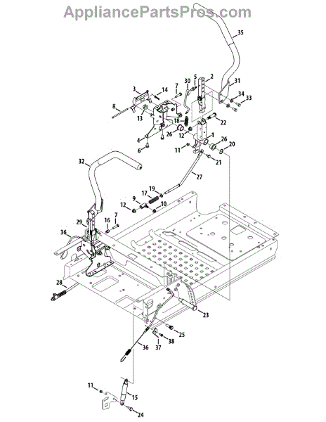 This part is a lap bar handle for the right-hand side of zero-turn riding lawnmowers. The operator uses this part is to control the transmission. The operator can control the speed and the steering with the lap bars. There are two lap bars per lawnmower, each working independently of the other. The left-hand lap bar handle is not included with this one.The right-hand lap bar handle may need to be replaced if it has been broken or dented due to forceful impact. The black metal material that this part is manufactured out of could become corroded or otherwise degraded, in which case it will need to be replaced. Wear gloves when working with outdoor power equipment. This component is an OEM part sourced directly from the manufacturer. It is sold individually. This lap bar handle for the right-hand side is compatible with riding lawnmowers that are manufactured by the Troy-Bilt, Cub Cadet, Craftsman, and MTD brands.