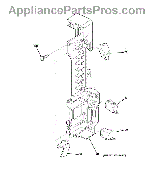 The Door Interlock Switch is an OEM part for GE microwaves. It ensures the safety of the microwave by preventing the appliance from operating while the door is open. This switch is part of a microwave's safety mechanism, which includes multiple interlock systems designed to stop the generation of microwaves immediately once the door is opened, thereby protecting users from exposure to microwave radiation.