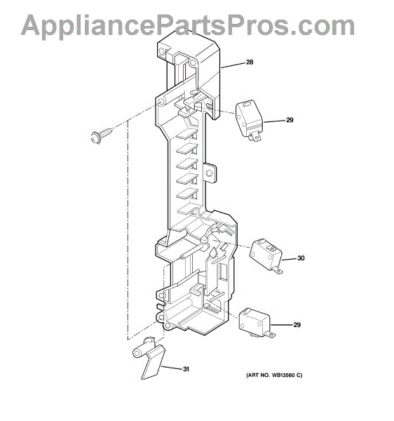 The Door Interlock Switch is an OEM part for GE microwaves. It ensures the safety of the microwave by preventing the appliance from operating while the door is open. This switch is part of a microwave's safety mechanism, which includes multiple interlock systems designed to stop the generation of microwaves immediately once the door is opened, thereby protecting users from exposure to microwave radiation.