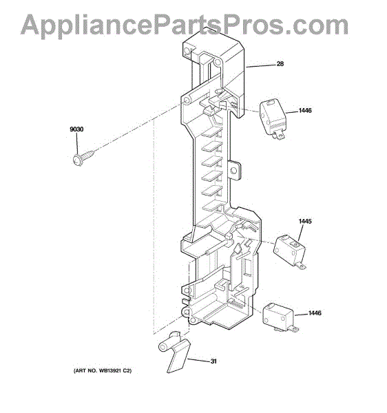 The Door Interlock Switch is an OEM part for GE microwaves. It ensures the safety of the microwave by preventing the appliance from operating while the door is open. This switch is part of a microwave's safety mechanism, which includes multiple interlock systems designed to stop the generation of microwaves immediately once the door is opened, thereby protecting users from exposure to microwave radiation.