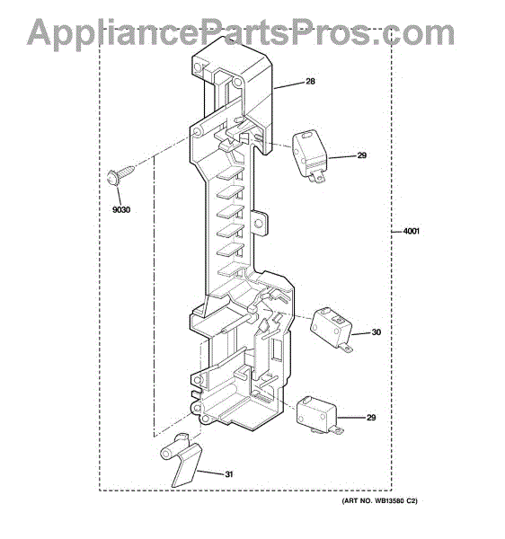 The Switch Holder is an OEM part for GE microwaves. It securely holds the door switches in place, ensuring that the microwave operates correctly and safely. The door switches detect whether the microwave door is closed, enabling the appliance to start cooking.