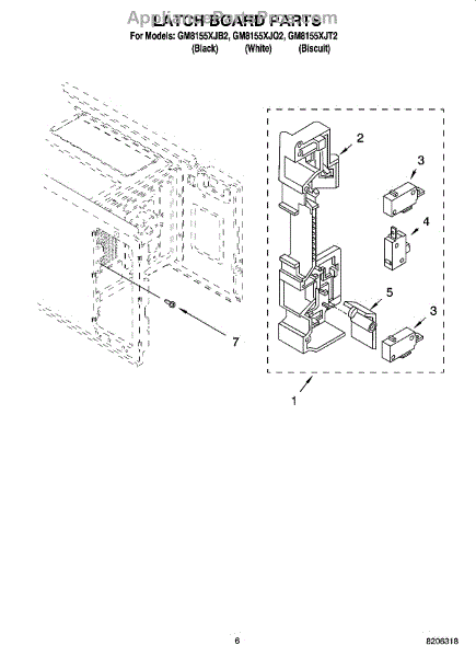Parts for Whirlpool GM8155XJT2: 05 - Latch Board Parts