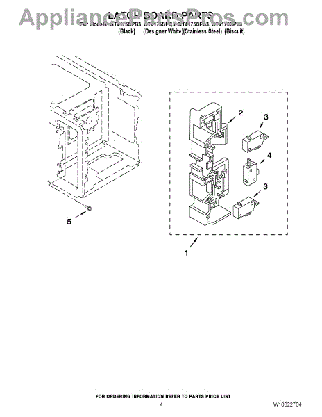 Parts for Whirlpool GT4175SPQ3: 04 - Latch Board Parts