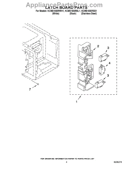 Parts for Kitchenaid KCMS1555RBL1: 04 - Latch Board Parts