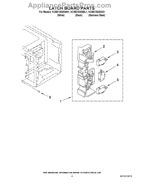 Parts for Kitchenaid KCMS1555SBL1: 04 - Latch Board Parts