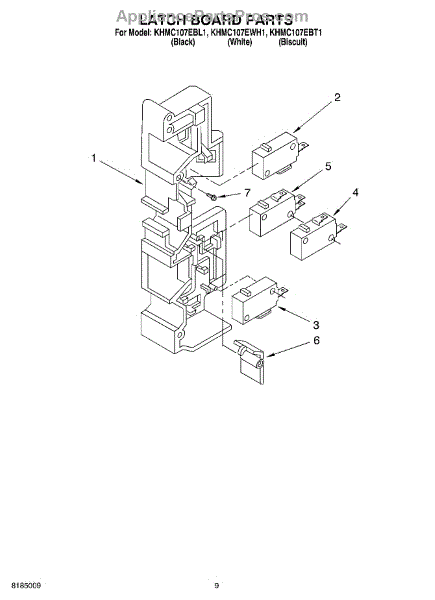 Parts for Kitchenaid KHMC107EBL1: 07 - Latch Board Parts
