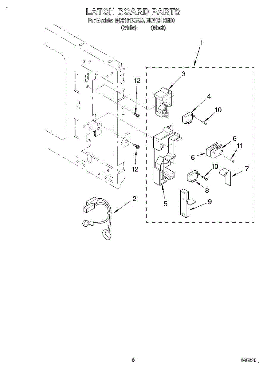 Parts for Whirlpool MC8131XEQ0: 05 - Latch Board Parts