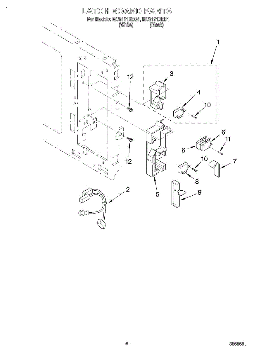 Parts for Whirlpool MC8131XEQ1: 05 - Latch Board Parts