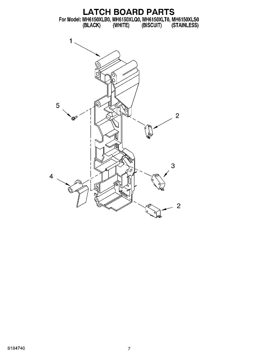 Parts for Whirlpool MH6150XLT0: 06 - Latch Board Parts