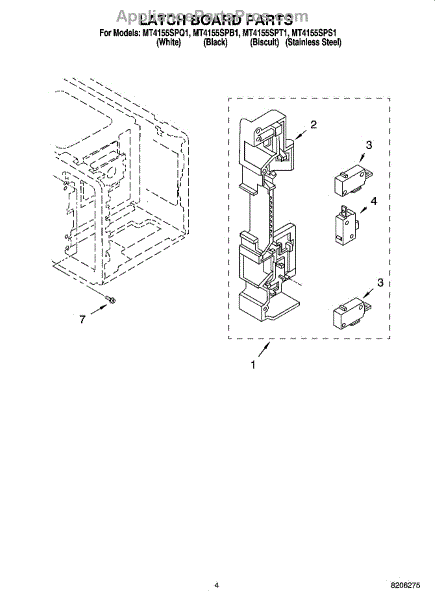 Parts for Whirlpool MT4155SPQ1: 04 - Latch Board Parts