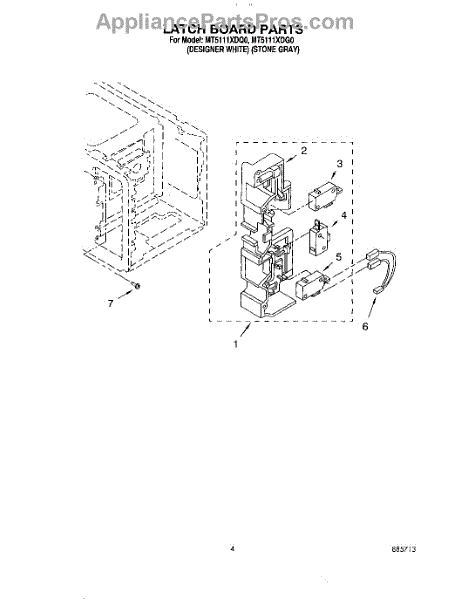 Parts for Whirlpool MT5111XDQ0: 04 - Latch Board Parts