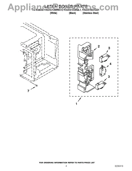 Parts for Whirlpool YKCMS1555RBL1: 04 - Latch Board Parts
