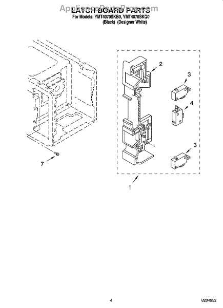 Parts for Whirlpool YMT4070SKB0: 04 - Latch Board Parts