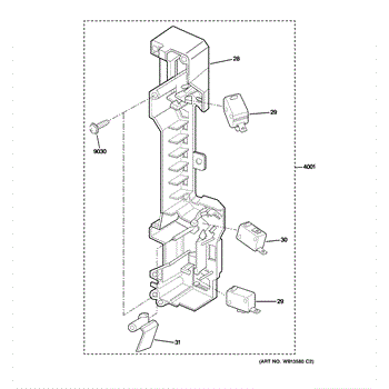 The Locker Holder Asm is an OEM part for GE microwaves. It secures and supports both the latch mechanism and door safety switches that holds the microwave door securely closed and prevents operation when open. This assembly works alongside other door components, such as the door handle and magnetron, to ensure a tightly sealed door and proper safety features for safe microwave use.