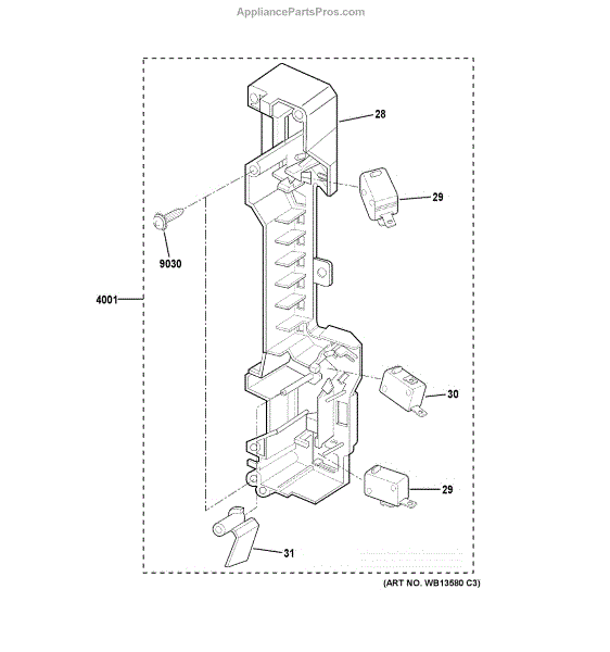 The Locker Holder Asm is an OEM part for GE microwaves. It secures and supports both the latch mechanism and door safety switches that holds the microwave door securely closed and prevents operation when open. This assembly works alongside other door components, such as the door handle and magnetron, to ensure a tightly sealed door and proper safety features for safe microwave use.