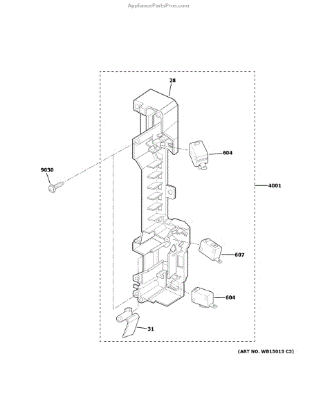 Plastic mounting bracket that holds microwave door switches in place. Replace if cracked, broken, or damaged to properly secure door interlock switches.