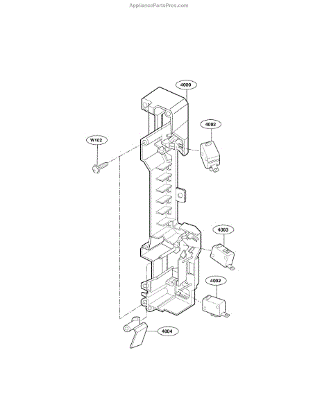 The Microwave Door Switch is an OEM replacement part for LG countertop microwaves. It monitors the door position electrically to prevent unsafe oven operation if ajar.