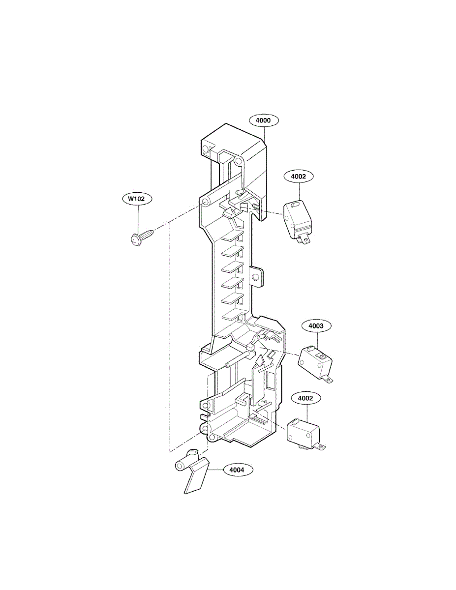 The Microwave Door Switch is an OEM replacement part for LG countertop microwaves. It monitors the door position electrically to prevent unsafe oven operation if ajar.