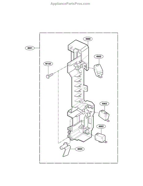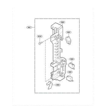 The Door Latch Housing and Interlock Switch Assembly is an OEM replacement part for LG microwaves. It consists of the protective door latch housing casing along with the two-door switches and interlock switch.