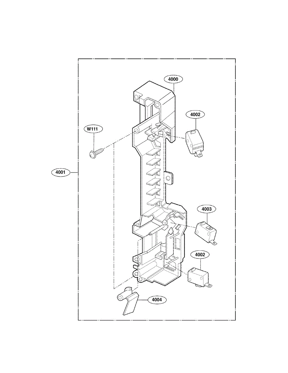 The Microwave Door Switch is an OEM replacement part for LG countertop microwaves. It monitors the door position electrically to prevent unsafe oven operation if ajar.