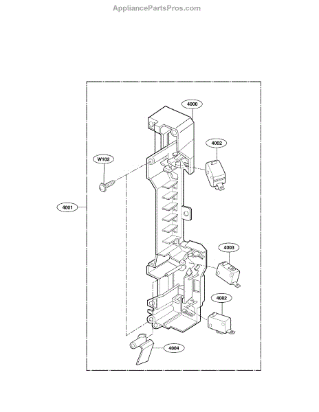 The Door Latch Housing and Interlock Switch Assembly is an OEM replacement part for LG microwaves. It consists of the protective door latch housing casing along with the two-door switches and interlock switch. The interlock switch prevents microwave energy from being generated inside the oven when the door is open. It shuts off all power once a faulty seal is detected between the door and cavity. Symptoms of issues can include: