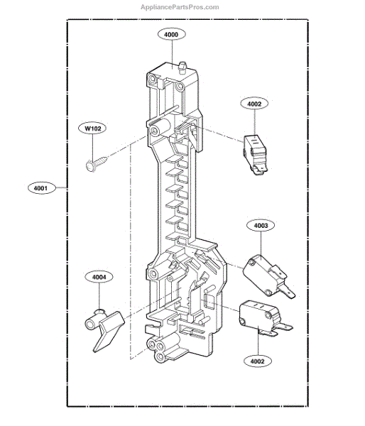 The Microwave Door Switch is an OEM replacement part for LG countertop microwaves. It monitors the door position electrically to prevent unsafe oven operation if ajar.