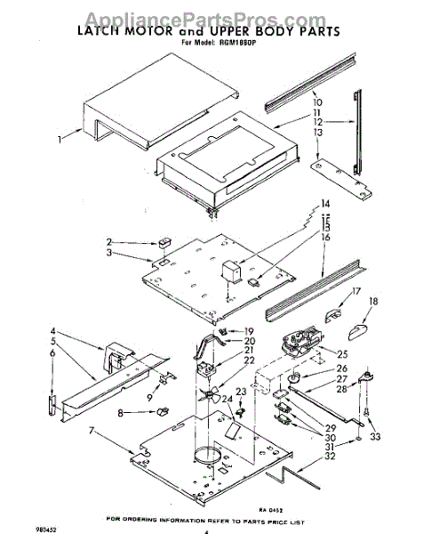Parts for Whirlpool RGM1880P: 04 - Latch Motor And Upper Body Parts