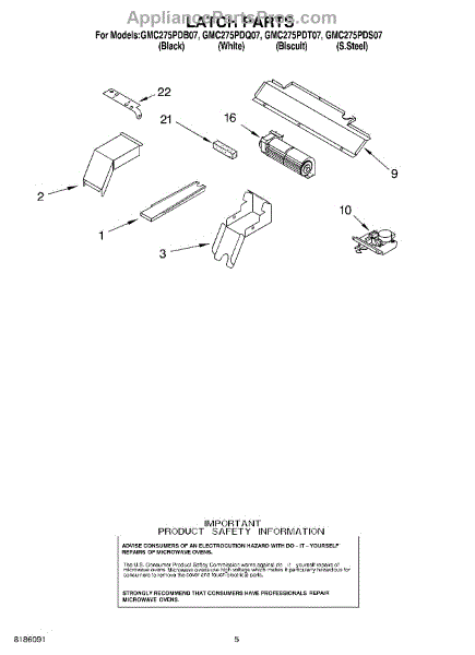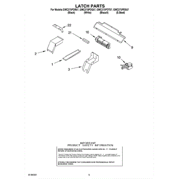 Parts for Whirlpool GMC275PDB07: 04 - Latch Parts
