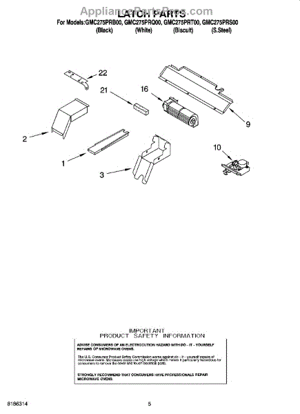 Parts for Whirlpool GMC275PRB00: 04 - Latch Parts