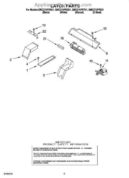 Parts for Whirlpool GMC275PRT01: 04 - Latch Parts