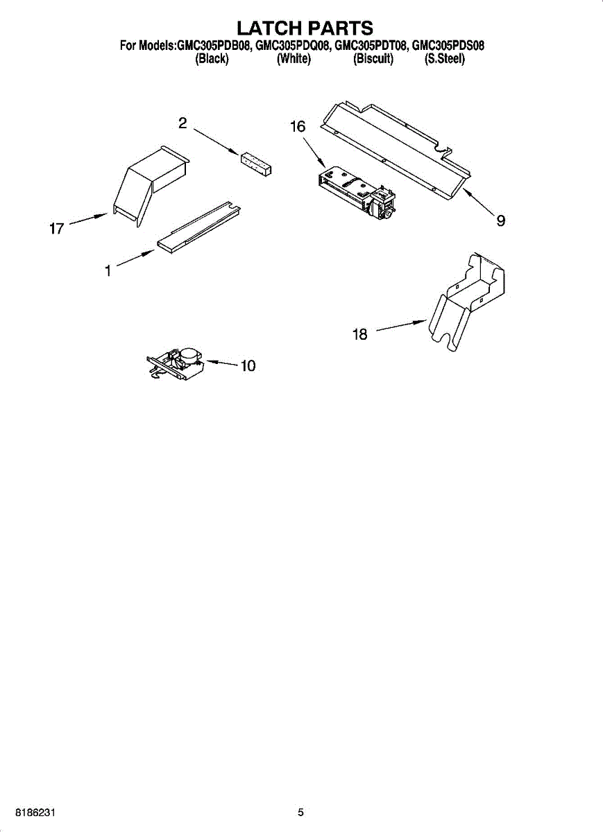 Parts for Whirlpool GMC305PDQ08: 04 - Latch Parts